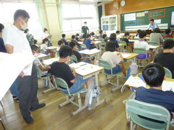 写真は、3年生の習字の学習風景です。担任が、丁寧に指示をしながら静寂の中で練習をしていました。一筆一筆に魂を込めて、と言うような気さえしました。