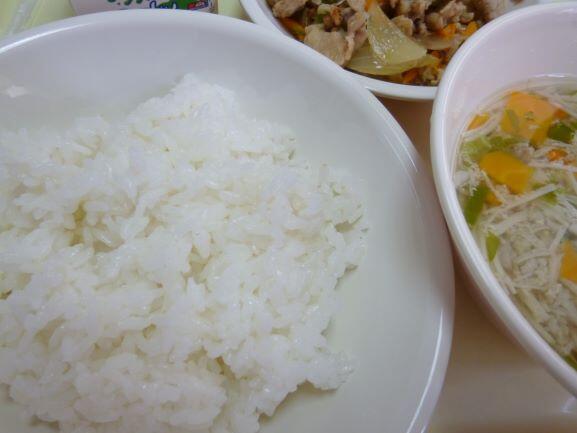 ご飯は日南産の新米でしたので、真っ白、輝いていました。そのご飯を中心に写真を撮りましたが、よく分かりませんね。