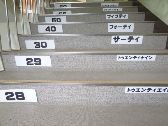 昨日は木曜日でしたので、恒例の英語の日でした。挨拶を英語で交わす日です。少しずつですが、1年生でもそれが出来るようになってきています。朝は、忘れている児童もいますが、こちらかに言うと気付いたように返してくれます。また、階段にも写真のような掲示物を担当が貼ってくれました。おもしろいです。言いながら階段を上がる児童もいます。