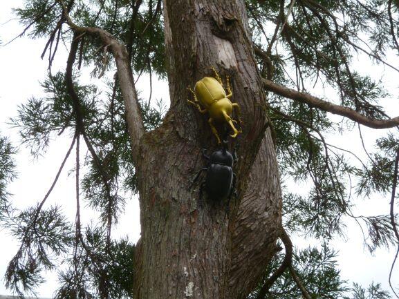 この4連休は、飫肥の町にも結構な観光の方々が来られていました。その中で、とても面白いものを見つけました。それは写真のカブトムシです。観光駐車場入り口の某お食事処前の杉の木につけてありました。アイデアですね。面白いです。