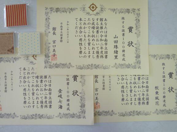 日南市立図書館が企画している「旅する読書100冊」にあらたに3名の児童が届きました。それを賞して、いつものとおり表彰状をいただきましたので、今日は校長室にて表彰をしました。朝、夜は肌寒くなってきたこの頃ですが、まさに「読書」に最適な時季です。忙しい日々とは思いますが、家庭で本や新聞に親しむ時間を親子で捻出していただけませんか。