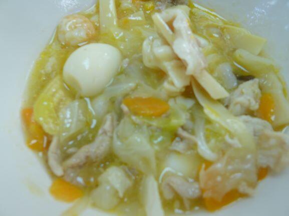 ちゃんぽんは麺とスープが別々に入ってきますので、のびていおらず、美味しくいただいています。豆乳杏仁をアップでどうぞ。