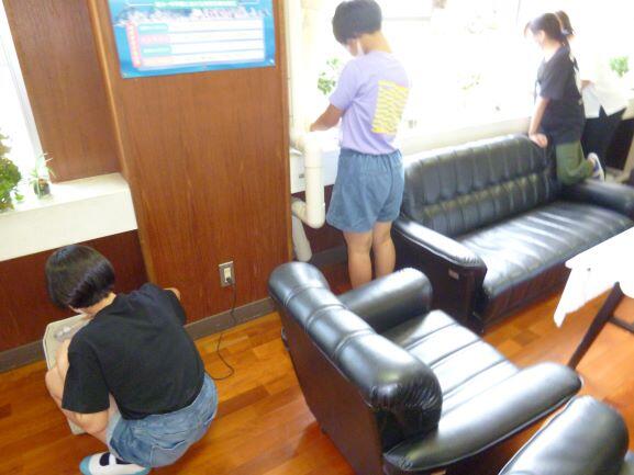 先日、校長室に6年生が家庭科の学習の一環で清掃に来てくれたことをご紹介しました。今日は、別の学級の6年生が同じように来てくれました。前回同様、割り箸に布を巻き付けたものを持参し、窓のさん、ドアのレールなどのすみずみをきれいにしてくれました。