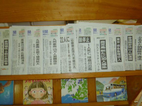 学校の玄関に置いている新聞の一面トップを見て気付きました。「コロナ」関係「大雨災害」関係だけしかありません。二つともとても悲しいことで、一日でも早く終息、復旧を願うばかりです。防止に努めながらも、出来ることを頑張っていくしかありません。