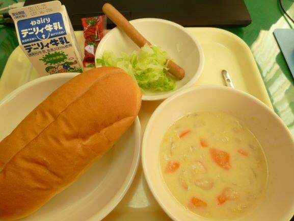 2年生の給食なのでパンは小さめ、おかずの量も少なめです。