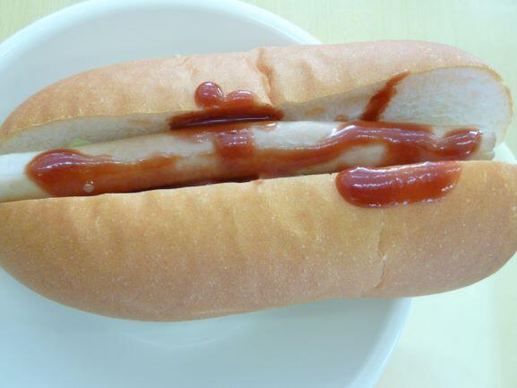 ホットドッグには、キャベツと長いウインナーをはさんでいただきました。
