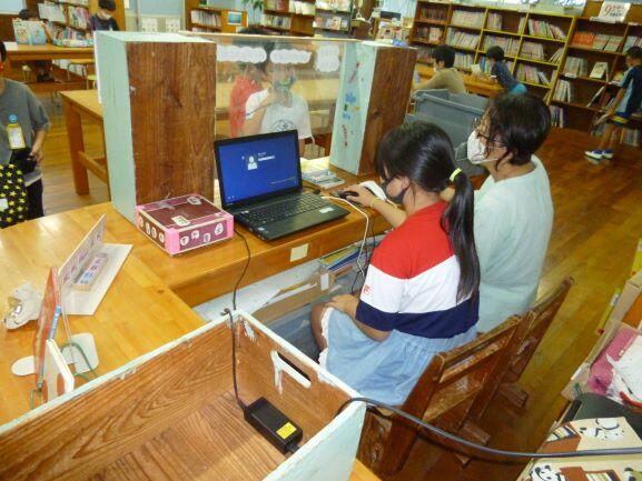 昼休み時間の途中からの雨は激しかったです。突然、降り出しました。洗濯物がぬれてしまったご家庭もあるのではないでしょうか。さて、写真は、図書委員会の児童と担当職員が本の貸し出しをパソコンで行っているところです。整理整頓は当然のことながら人がしますが、貸し出しの管理はパソコンです。いつもご苦労様です。