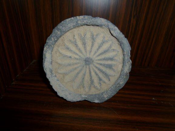 本日、現在4年生の児童が「前にぼくが持ってきた石はまだありますか」と尋ねに来ました。思い返すと、今から2年前、この児童が2年生の時に校庭の隅を掘っていたら、こんな「石」が出てきた、と言って持ってきたことがあったんです。昔の瓦の一部分で、珍しいと思ったものですから、きれいに洗って室に飾っていました。それを見せると、児童もとても満足そうな顔をしていました。