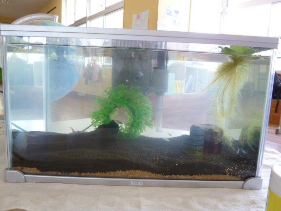 五年生の廊下に「めだか」が入った水槽が増えていました。写真では見にくいですが、めだかが入っています。涼しげで和みます。