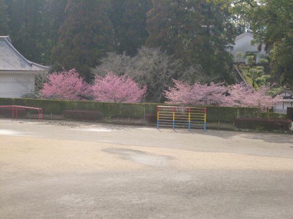 今日は、日差しはそう強くなかったのですが、昼休み時間の気温は20度ありました。いつものように児童は走り回ったり縄跳びをしたり、木陰で数人で話したりするなど、思い思いのひとときを過ごしていました。やや暑かったため、水飲み場にはひっきりなしに児童の姿がありました。運動場の背景のソメイヨシノがしばらくすると満開です。