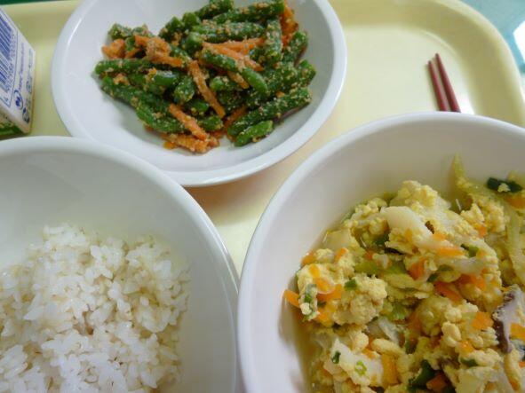 白菜のごま和えは、コーンも入っていて子どもたちも食べやすそうでした。