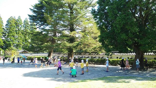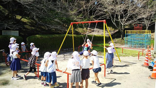 3週間ぶりの昼休み時間。運動場には、子どもたちの元気いっぱいの笑顔で溢れていました。青空の下、ドッジボールをしたりおにごっこをしたり、真っ赤な顔をして遊び回る子どもたを見ていると、コロナ禍であることを忘れてしまいそうでした。また、校庭のブランコが新しくなりました。さすが飫肥っ子、仲よく順番を守って遊んでいました。