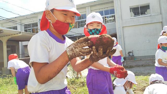 2年生が芋掘りをしました。1本1本丁寧に植えた小さな苗が成長して、たくさんの芋をつけていました。大きな芋を掘り出して、大喜びする子どもたちの笑顔がきらきら輝いていました。今日は、各々お家に持ち帰ります。スイートポテトかな?焼き芋かな?どんなサツマイモ料理でいただいたか、後で発表してもらう予定です。自分たちで育てたお芋はきっとおいしいでしょう。
