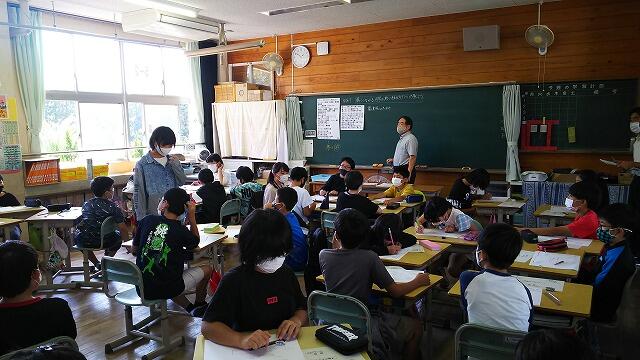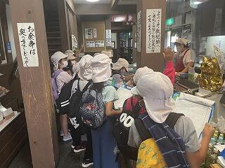 今日は、秋の遠足でした。1年生は、向原河敷緑地公園、3年生は、消防署見学、4年生は、日南クリーンセンター、黒潮環境センターに行きました。残暑が厳しい中でしたが、どの学年も楽しい思い出ができたようです。2年生は飫肥の町を探検しました。飫肥のまちにあるいろんなお店やさんを訪問して、見学したり、インタビューをしたりしました。訪問させていただいたお店は、松田鮮魚店さん、おび天蔵さん、紀風屋小町さん、安藤商店さん、戸村飫肥店さん、服部植物研究所、飫肥図書館の7箇所で、4グループに分かれて訪問しました。どのお店や施設でも、子どもたちを温かく迎えてくださり、どんな質問にも快く答えて下さいました。戸村飫肥店では、買い物体験もしました。地域の方々からたくさんの気付きや学びがあった、探検になりました。本当にありがとうございました。