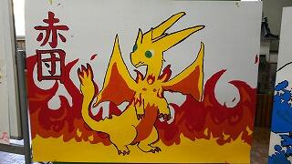 赤・白各団のキャラクターの絵(運動会当日に運動場に飾る物)が完成しました。昼休み時間などに6年生が描いてくれました。キャラクターは、すでにお伝えしたとおり、全校児童から募集したものを展示、投票によって決定したものです。
