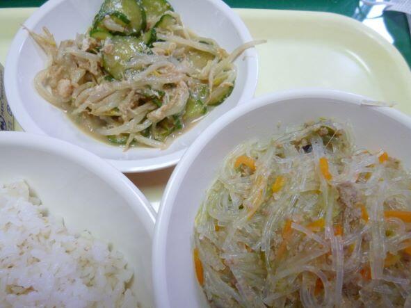 麦ご飯、麻婆春雨、棒々鶏サラダ