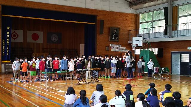 6年生は、本日から泰平踊りの練習を開始しました。例年よりも1月遅いスタートです。いつものことながら、泰平踊り保存会本町組の皆様がご多忙にもかかわらず、12名も来て下さいました。来週から火曜と木曜日、そして隔週の金曜日も2時間続けての指導をして下さいます。練習期間は例年の半分ですが、その分、一回を2時間してくださいます。泰平踊りを習うのをとても楽しみにしている児童も多く、どれだけ運動会までに仕上がるかやや不安はありますが、毎回の練習をより一生懸命に取り組むことで充実感につなげたいと考えています。