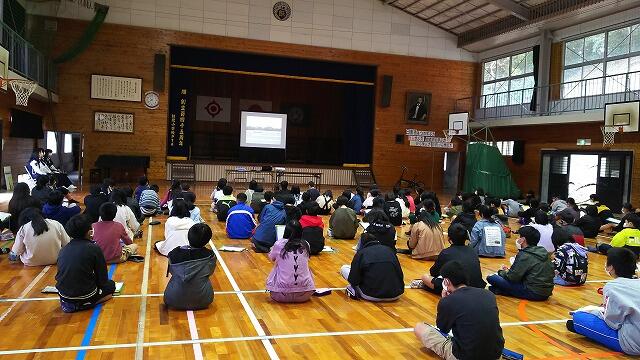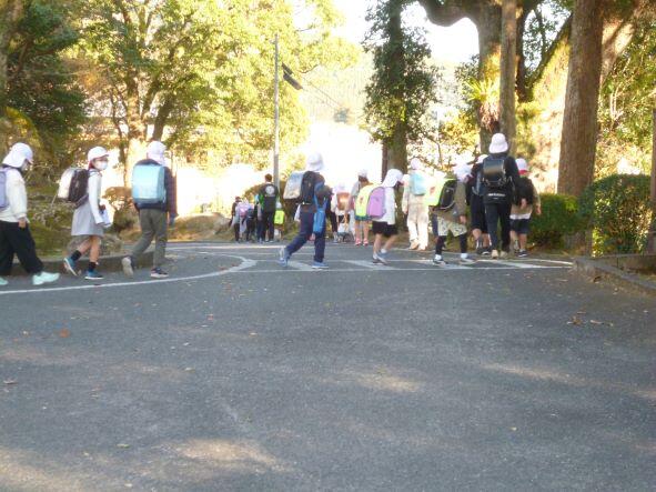 15日には、地区別集会を行いました。集会では、地区ごとの危険箇所等の確認をしました。その後、地区ごとに並んで担当教師が途中まで引率しながら下校しました。冬休みも近いですが、交通事故などにも遭わないように願います。