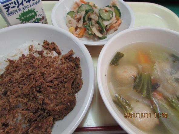 今日は、うなぎの料理、ひつまぶし風ご飯の具が出ました。給食ではとても珍しいです。そういえば、昨年はウナギ丼が出たこともありました。