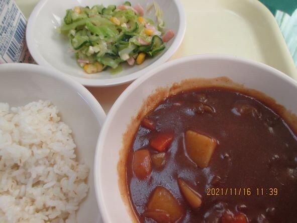 今日は十五夜の行事食でした。「日南産新米、カボチャのすいとん、れんこんのきんぴら、お月見ゼリー」新米は最近では3度目です。飫肥ファームでとれた新米です。また、十五夜にちなんだ月のようなカボチャのすいとん、デザートまでついています。昨晩、家族でお月見の散歩をされたご家庭もあるようです。今日の夜の月はどうでしょうね。コロナウイルス新規感染者数も確実に減ってきています。もう一息、一人一人が予防に注意した生活を過ごし、一日も早く、さらなる感染者数の減少化を図りたいです。