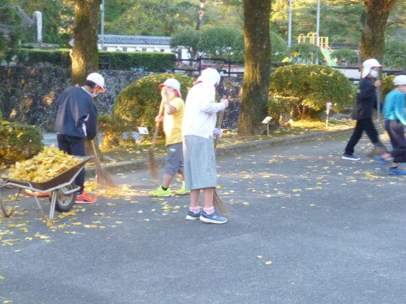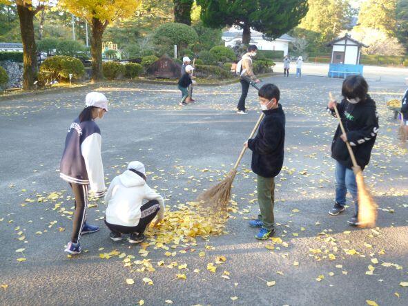 最近、この時期ならではの「落ち葉」が落ちています。それに伴い、「朝のボランティア」をしてくれる児童の数も増えて、大変助かっています。今は、もっぱら黄色に染まった4本の銀杏、この黄色い葉は、当然のことながら今後、全て落ちて、黄色い地面にしていきます。低学年を中心とした児童は、その黄色い絨毯の上で遊んだり、葉っぱで何かを作ったり姿も見られることだと思います。これからの飫肥小の風景の一つ、落ち葉、落ち葉を使った遊び、ボランティア・・・・季節は寒い時季を迎えようとしています。