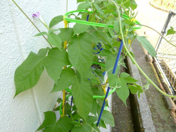 1年生が育てている朝顔、2年生が育てている「ミニトマト」ともに、結構、成長しています。ミニトマトは真っ赤なのもありました。朝顔は花が咲いているのもありました。