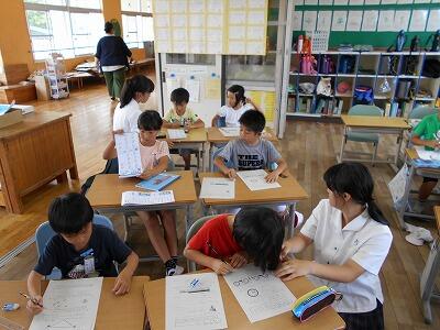 8月22日(火)は、飫肥小振徳塾3日目でした。前半は、各教室で学習を行い、高校生ボランティアや地域ボランティアの方々に学習支援として入っていただきました。