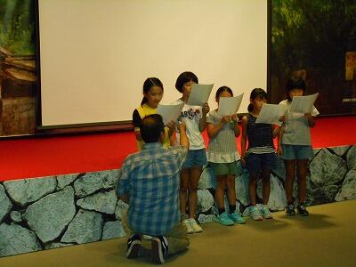また後半では、地域ボランティアの方々による『戦争講話』を行っていただきました。72年前に起こった「油津大空襲」の話を紙芝居形式で、また、沖縄の小学生が書いた「へいわってすてきだね」の詩の朗読、『原爆をゆるすまじ』の歌の紹介などあり、戦争の悲惨さ、恐ろしさをたくさん学んだ子どもたちでした。