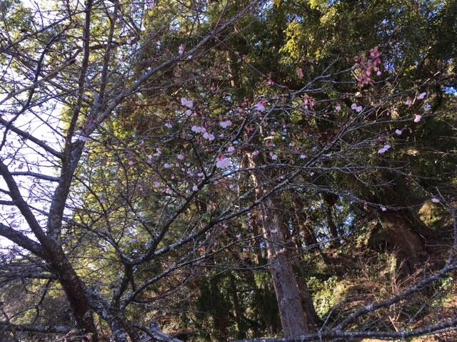 運動場の裏の資料館側には、早くも桜が咲いていました。