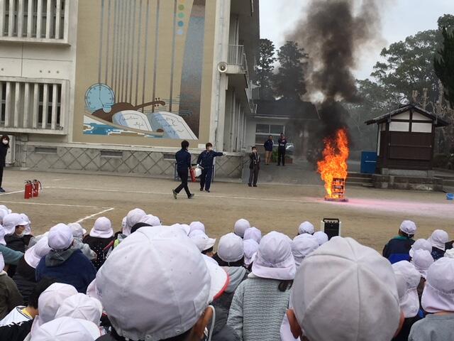 全員が無事に避難した後、お話をしていただき、消火訓練も行いました。