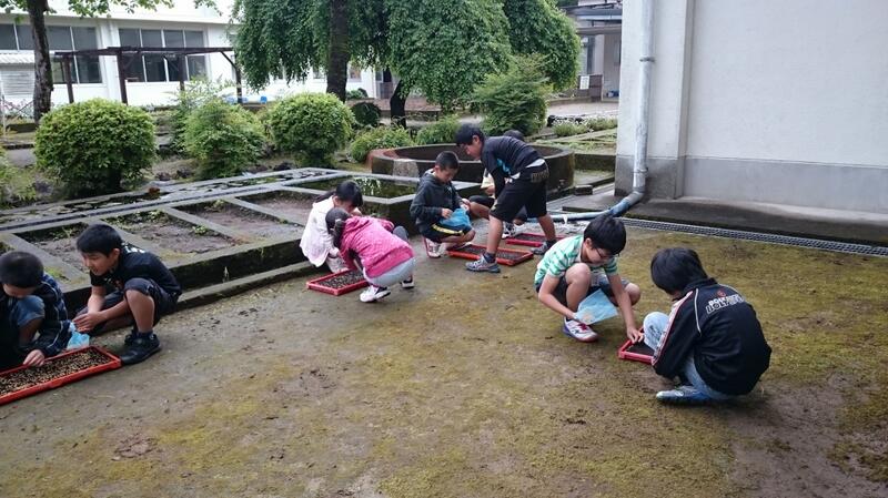 5年生が米の「種まき」を行いました。