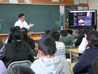 6年生は、国語科の学習「プロフェッショナルたち」での学習の一環として、「宮崎牛」の生産者で、串間市在住の鎌田秀利氏に講話をしていただきました。5年に一度開かれる国内最大の品評会「和牛オリンピック」で肉質日本一に選ばれている方です。