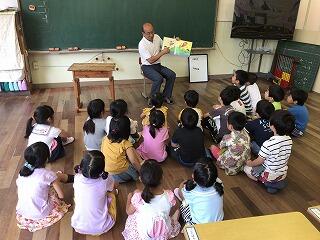 月曜日の朝は、「読み聞かせ」です。「読み聞かせ」の日は、PTAボランティア「赤いスイートピー」の皆さんに「読み聞かせ」をしていただいています。子どもたちもとても楽しみにしています。そのような中、6月25日(月)は、校長が1の2で読み聞かせをしました。読んだ本は、「きょうはすてきなお化けの日」です。子どもたちはワクワクしながら聞いていました。最後に、クイズなどがあって、楽しい時間を過ごしました。