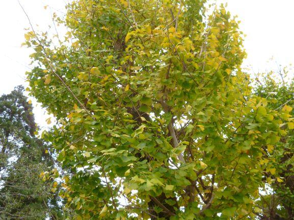 玄関前の銀杏の木が全身黄色になりつつあります。秋に樹木の葉が赤く変わることを紅葉と書いてこうようと読みます。でも、銀杏の葉が黄色く色づくのも黄葉と書いてこうようと読むようです。北郷の山や酒谷から都城に抜ける道などでは紅葉も黄葉もちらほら見られます。もう間もなく、この銀杏の木の下も黄色い絨毯に敷き詰められることだと思います。