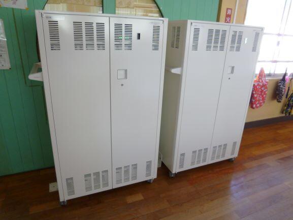 国が示した「タブレット一人一台」について、具体的に作業が進んでいます。すでに校内ランの整備、タブレット保管庫の設置は終了しています。もうすぐ、一人一台分のタブレットが、主に各教室の廊下に設置されたこの保管庫に搬入されます。タブレットの活用は4月からです。