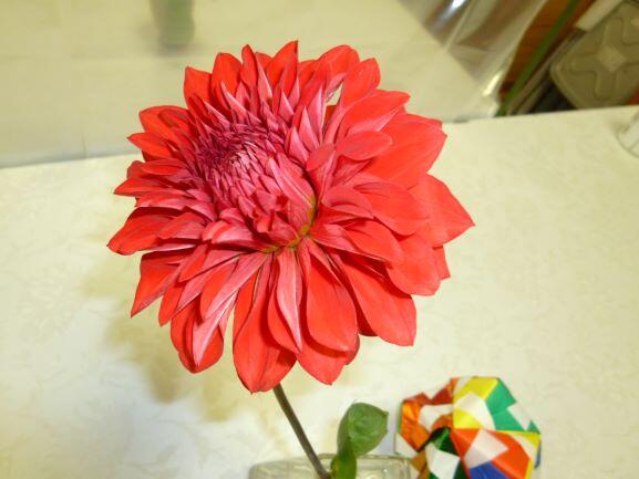 今朝、1年生児童がダリアをもってきてくれました。赤とオレンジの見事なダリアです。以前もいただいたことがあり、玄関などに飾りました。今朝も大変ありがたく飾らせていただきました。