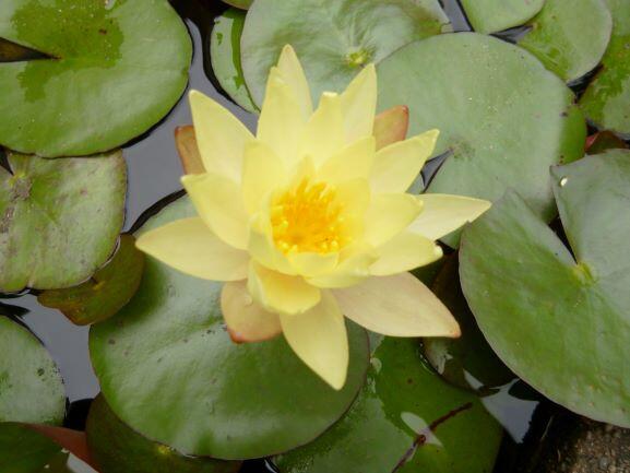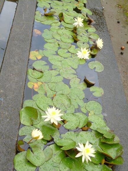 今年も中庭の池で蓮の花が開花し始めました。とても美しく神秘的な黄色い蓮の花です。