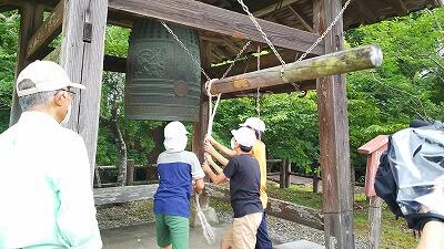 今日は、時の記念日です。毎年、この日に6年生が「飫肥城下町文化財愛護少年団」として、結団式を行っています。「鐘つき堂」がある学校は、全国でも珍しいと思います。その鐘を50年以上撞き続けている「飫肥城の鐘を撞く会」の方々をお招きして、実際に鐘を撞いてみました。毎朝6時に時を知らせる飫肥城の鐘の歴史や語り継がれていることを知った6年生は、神妙な面持ちで鐘に向かい、一礼して、友だちと力を合わせて鐘を打ち鳴らしていました。そして、時を大切にする気持ちを高めていました。