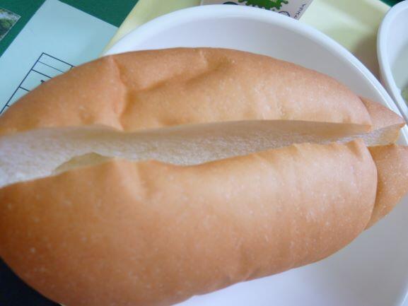 コッペパン、コーンチャウダー、アスパラとベーコンのソテー