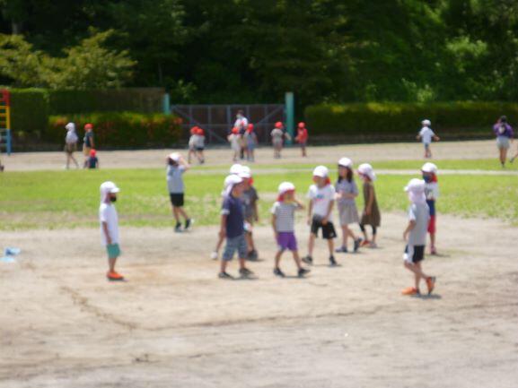 今日はすごく暑い日でした。昼休み時間には、日も照っていて余計に暑く感じました。でも、多くの児童が運動場で元気に遊んでいました。中には、顔を真っ赤にして走り回っている児童もいました。暑さのため、水飲み場も大人気で、児童がひっきりなしに水を飲みに来ていました。一方、下学年の一部は、割と日の当たらない中庭の池で、水中のかえるや虫たちを見ていました。このように45分間の昼休み時間、児童は思い思いの活動をして楽しんでいました。