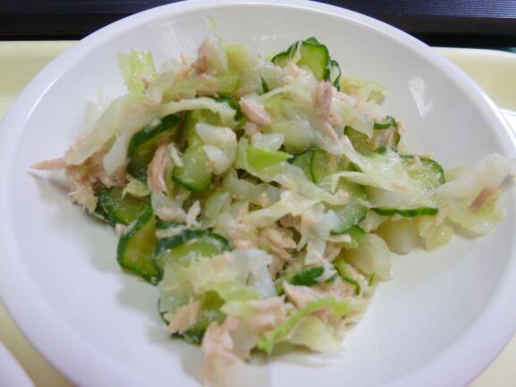 もずくスープ、米粉の春巻き、キャベツのごま和え