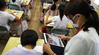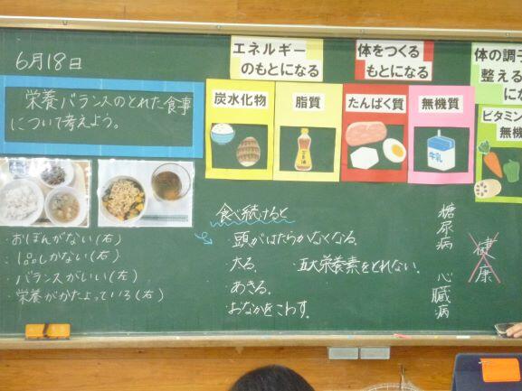 6年生が食育の授業を行いました。「栄養のバランスのとれた食事について考える」ことがテーマの授業でした。途中で、タブレットを使って調べたり、自分の考えを教師に送り、それを一斉に画面で見たり、発表する人の考えを見たりするなど機器を効果的に使いこなしていました。