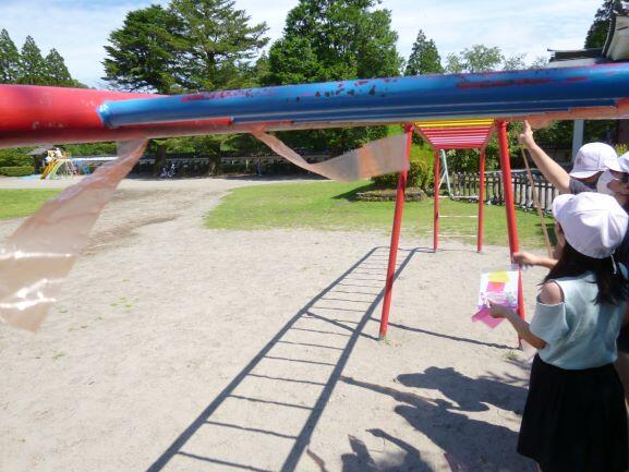 5月末に行いました遠足で、5,6年生はグループごとに総合運動公園を目的地とするウォークラリーを行いました。事後に数名の児童に感想を聞くと、「疲れたけれどとても楽しかった」と言っていましたが、その時の頑張り賞を「頑張ったで賞」として写真付きの表彰状が掲示されていました。児童の晴れやかで楽しそうな顔が分かりにくいのは残念ですが、全グループの分がこのように掲示されています。