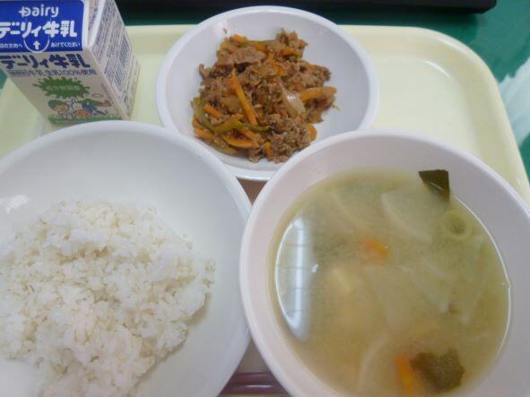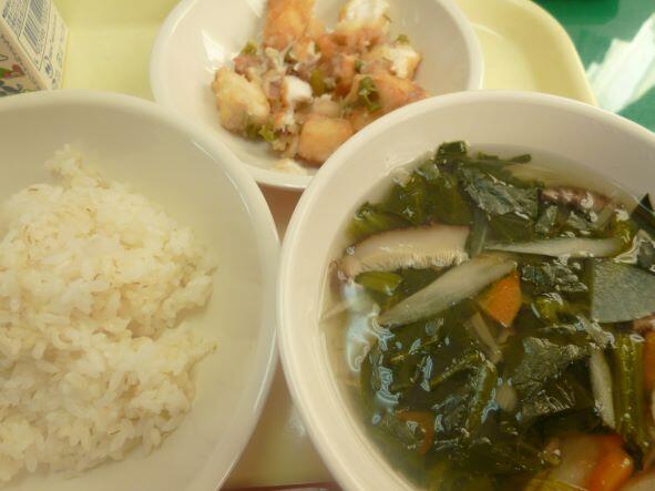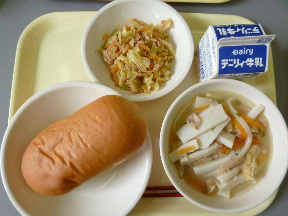 今日の給食は、黒糖パン、五目うどん、ツナのごま油炒めでした。黒糖パンは、ほのかに黒糖の味がして児童にも人気です。また、うどんは特に今日のような寒い日には体も温かくなり美味しいと思いました。明日から児童は三連休です。楽しい連休になることを願っています。