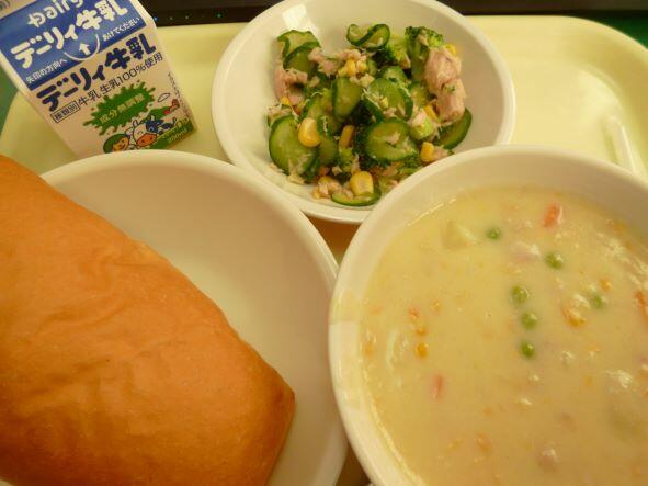 12日 コッペパン、クリームシチュー、ブロッコリーサラダ