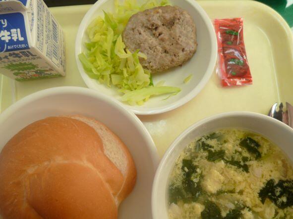 今日のメニュー チリコンカン、しめじのすのもの、パン 、牛乳