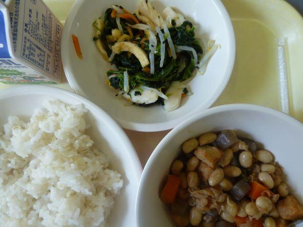 16日、市内ほとんどの中学校が卒業式のため、そのお祝いのメニューでした。赤飯、キャベツの味噌汁、宮崎牛の生姜焼き、(中学校は+苺のお祝いケーキ)ケーキは、小学校も23日につく予定です。