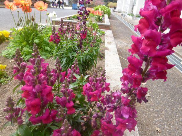 昼休みには、顔を真っ赤にして走り回っている児童もいたほど、今日は暖かかったです。花壇の花も黄色や赤の鮮やかな色の発色を見せ始めています。