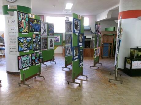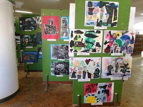 児童玄関奥のホールにおいて、校内版画展が開催されています。どの作品も創造力にあふれ、黒と白のコントラストがあるものや色鮮やかなものもあります。最後の参観日の際には、ぜひご覧になっていただきたいです。