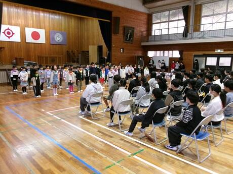 2月20日(金)には、体育館やオンラインでお別れ集会が行われました。トップバッターは1年生でした。各学年が6年生への感謝を込めて発表していました。「未成年の主張」もあり、とても盛り上がっていました。弁当の日もありました。